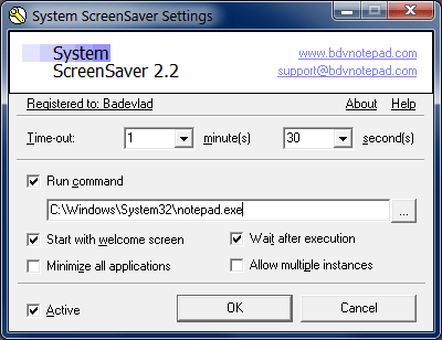 System ScreenSaver is a simple utility that allows you to run any program as a screensaver.
